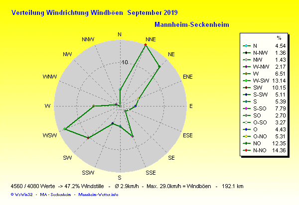 Der wärmste Tag war der 04.09.2019 um 17:00 mit 27.6°C. Am kältesten war es mit 6.4°C am 20.09.2019 um 07:35.